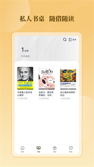- 每天在線借書、還書,用簡單操作便捷操作,手機就能輕松完成借書還書操作;