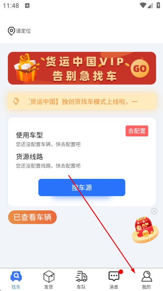 1、打開貨運(yùn)中國(guó)APP,點(diǎn)擊底部導(dǎo)航欄中的我的。