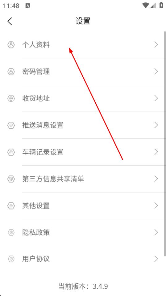 3、在設(shè)置頁(yè)面中,點(diǎn)擊個(gè)人資料選項(xiàng)。