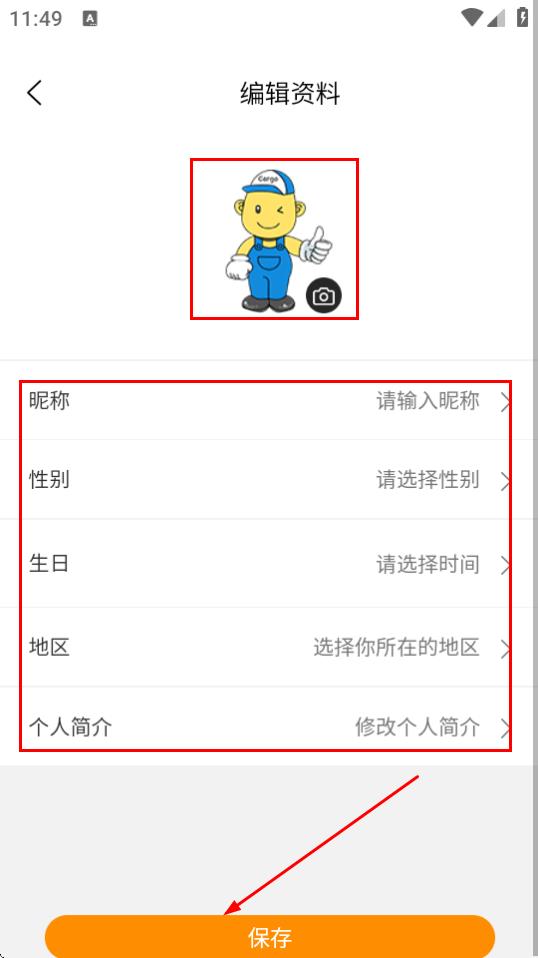 4、在編輯資料頁(yè)面,修改信息,點(diǎn)擊保存,即可完成個(gè)人信息的修改。