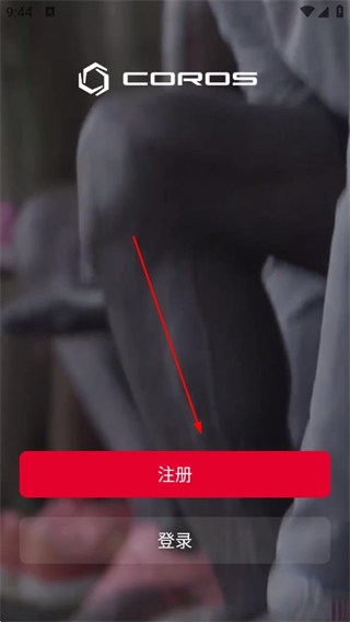1、打開COROS APP,點(diǎn)擊注冊(cè)鈕,進(jìn)入注冊(cè)頁面。