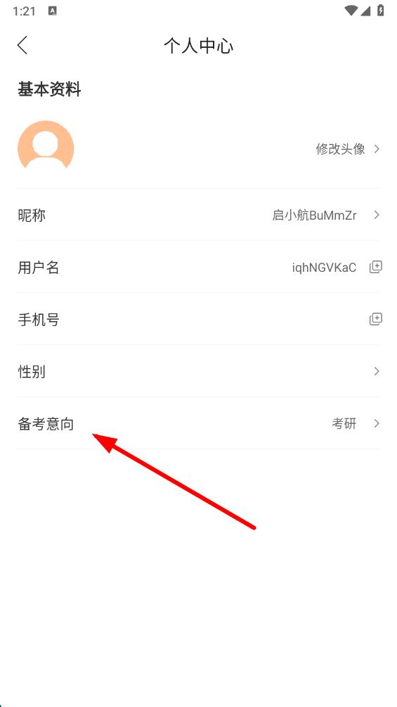 3、在個(gè)人中心頁面里,找到備考意向選項(xiàng)并點(diǎn)擊進(jìn)入。