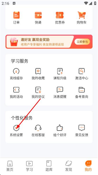 2、在我的頁面中,點(diǎn)擊下方系統(tǒng)設(shè)置選項(xiàng)。