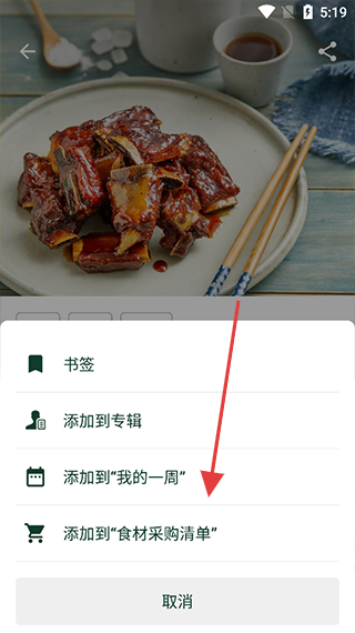 3、找到想要添加的菜譜后,點(diǎn)擊操作選項(xiàng)并選擇添加到‘我的一周’。