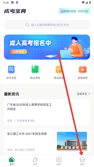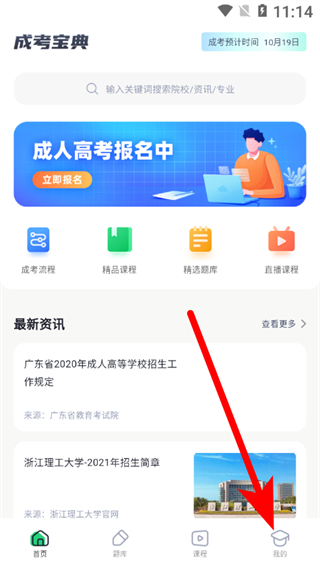 1、在成考寶典APP首頁(yè),點(diǎn)擊右下角我的選項(xiàng),進(jìn)入個(gè)人中心界面。