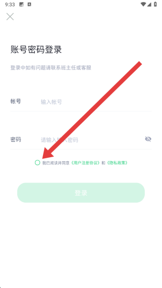 3、在進(jìn)入到登錄頁(yè)面時(shí),需先點(diǎn)擊勾選我已閱讀并同意按鈕。
