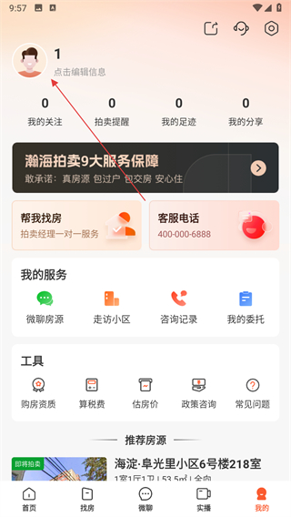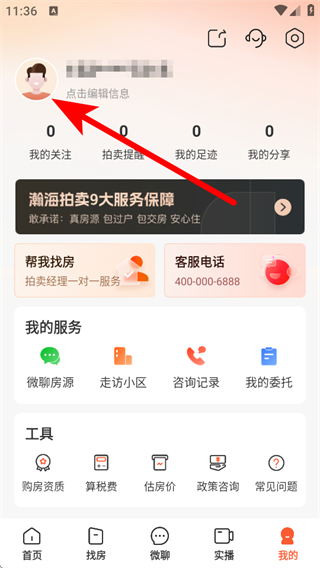 2、在個(gè)人頁(yè)面中,點(diǎn)擊頭像區(qū)域旁的點(diǎn)擊編輯信息,進(jìn)入我的個(gè)人信息頁(yè)面。