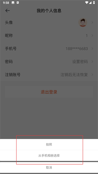 4、在彈出的窗口中,選擇拍照或從手機(jī)相冊(cè)選擇,挑選合適的圖片,即可完成頭像的更改。