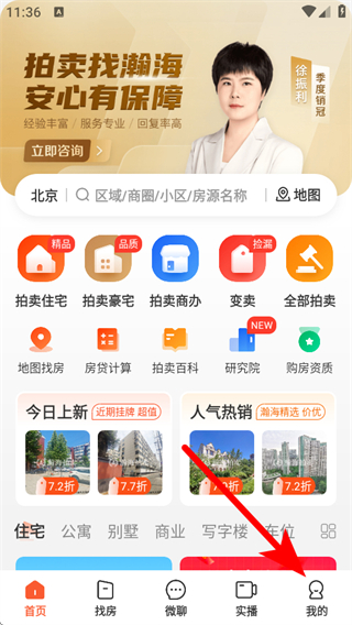 2、底部導(dǎo)航增加【實(shí)播】,優(yōu)質(zhì)探房視頻等您來解鎖