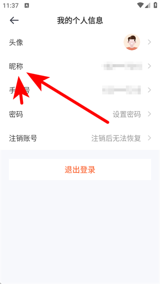 3、在我的個(gè)人信息界面中,點(diǎn)擊昵稱選項(xiàng),進(jìn)入修改昵稱頁(yè)面。