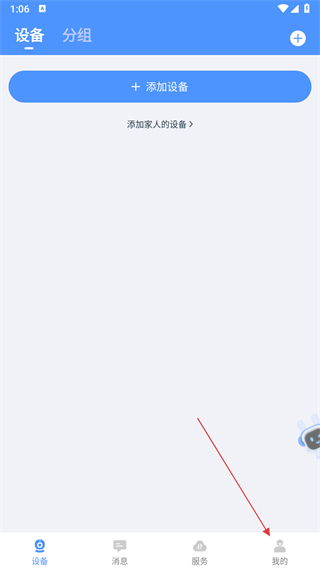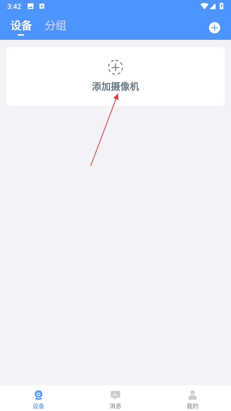 1、打開(kāi)云視云APP,在“設(shè)備”頁(yè)面點(diǎn)擊添加攝像機(jī)按鈕。