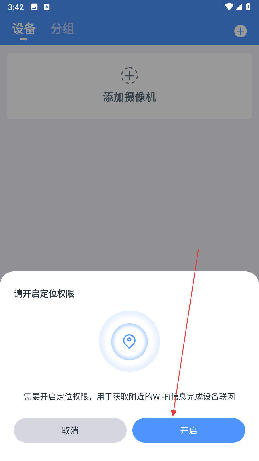 2、當(dāng)彈出請(qǐng)開(kāi)啟定位權(quán)限提示框時(shí),點(diǎn)擊開(kāi)啟按鈕。