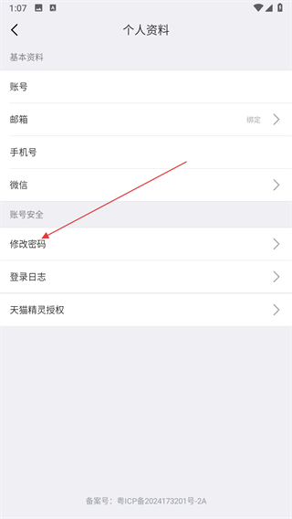 3、進(jìn)入個(gè)人資料頁(yè)面后,點(diǎn)擊修改密碼項(xiàng)。