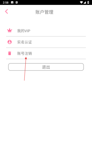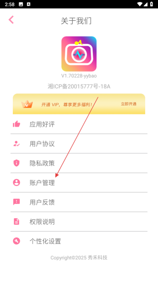 3、在關(guān)于我們界面里,點擊賬戶管理選項,進入賬戶管理頁面。