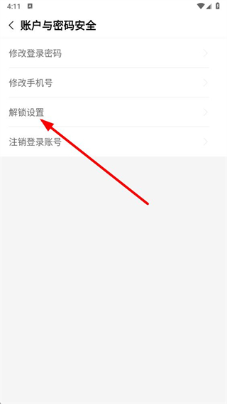 4、進(jìn)入賬戶與密碼安全頁面后,點擊解鎖設(shè)置選項。