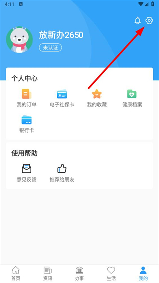 2、在我的頁面,點擊右上角的設(shè)置圖標(biāo),進(jìn)入設(shè)置界面。