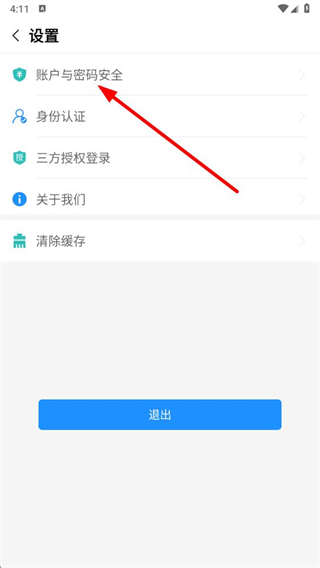 3、在設(shè)置界面里,點擊賬戶與密碼安全選項。