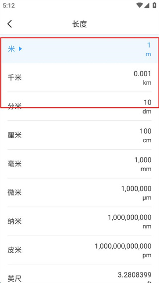4、在長度換算界面查看不同單位間的換算結(jié)果,獲取所需的長度單位數(shù)值。