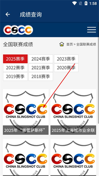 2、進(jìn)入成績查詢頁面后,先在賽季選擇欄里找到目標(biāo)賽季,再點擊該賽季下對應(yīng)的具體賽事。