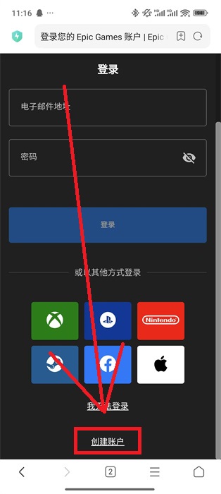 4、在登錄頁面可以拉到最下面,可以看到【創(chuàng)建賬戶】去進行創(chuàng)建;