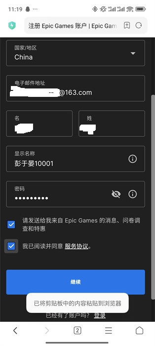 6、隨后就是填寫相關(guān)的信息還有電子郵件,這里需要注意,電子郵件需要使用【網(wǎng)易郵箱】,不要使用QQ郵箱;