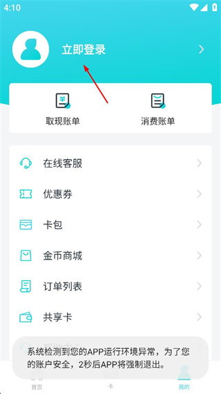 3、在我的頁面中,找到上方帶有頭像標識的立即登錄選項,點擊此選項以進入登錄相關的操作界面。
