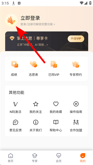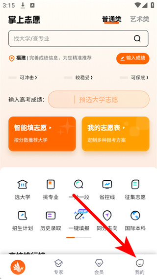 1、打開掌上志愿APP,點擊右下角我的,進入個人功能頁面。