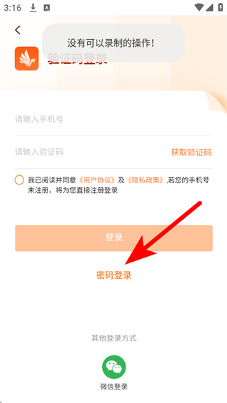3、我們選擇密碼登錄的方式,進入密碼登錄的頁面。