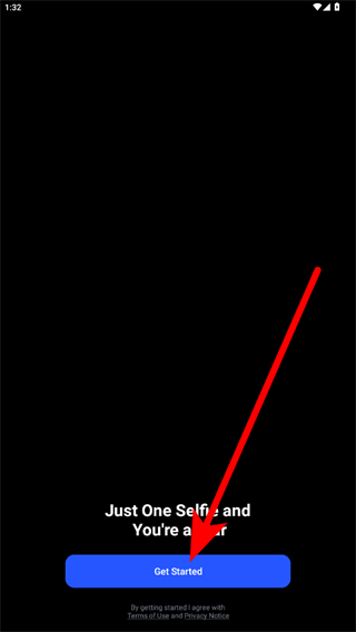 1、打開Reface應(yīng)用,在初始界面點(diǎn)擊Get Started按鈕,進(jìn)入下一步操作。