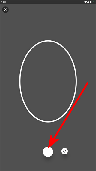 3、若選擇自拍,在出現(xiàn)的拍攝界面中,將臉部置于橢圓框內(nèi),點(diǎn)擊下方的拍攝按鈕進(jìn)行自拍。