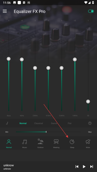 1、打開Equalizer FX Pro應用,界面底部有點擊Sleep這類場景模式。