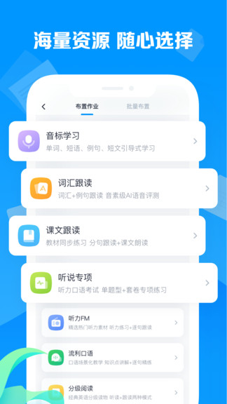 1、選擇布置作業(yè)更加快捷,提供的資源非常豐富,便于教師隨時使用;
