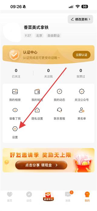 2、在個人頁面中,找到并點擊設(shè)置選項。