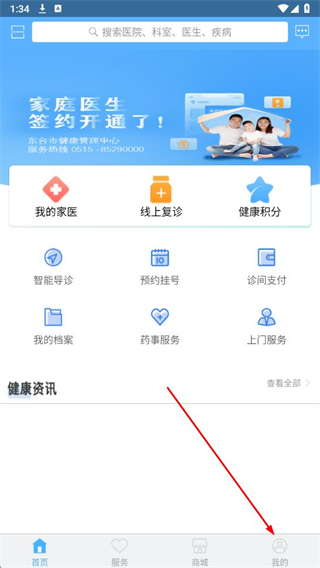 1、打開東臺市健康管理中心APP,點(diǎn)擊我的選項(xiàng)。