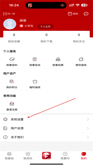 2、在個人主頁內(nèi),點(diǎn)擊系統(tǒng)設(shè)置的功能按鈕。