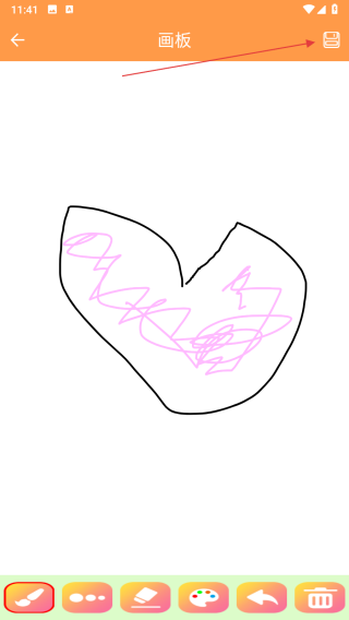 3、繪制完成后,點(diǎn)擊畫板頁(yè)面右上角的保存圖標(biāo),彈出保存名稱輸入框。