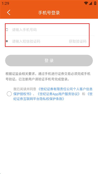 2、在手機(jī)號(hào)登錄界面的請(qǐng)輸入手機(jī)號(hào)碼欄輸入手機(jī)號(hào),點(diǎn)擊獲取驗(yàn)證碼并輸入短信驗(yàn)證碼。