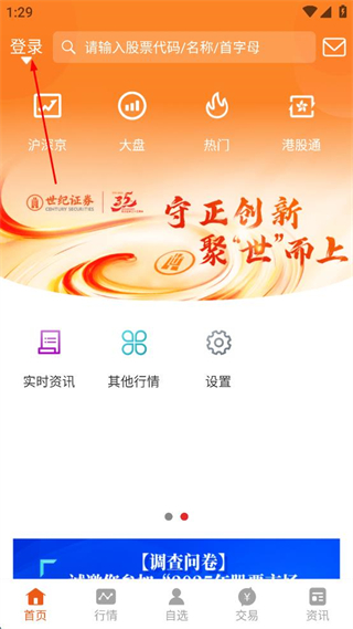1、找到世紀(jì)證券首頁(yè)的登錄按鈕,點(diǎn)擊登錄。