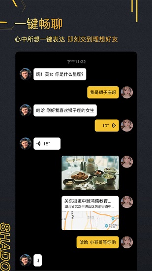 影子app,十分優(yōu)質(zhì)的一款線上交友a(bǔ)pp,在這里你可以輕松的找一個(gè)懂你的人,一鍵就可以開啟你們的聊天,不喜歡也可以馬上中止聊天,在這里你可以盡情的分享自己的生活日常,也可以查看別人發(fā)布的日常,你可以收獲一堆志同道合的小伙伴,感興趣的朋友快來下載吧!