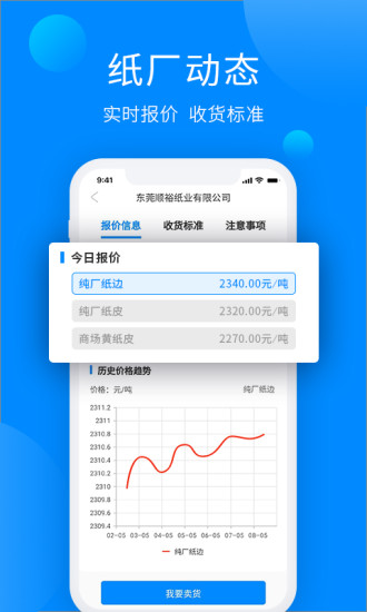 紙通寶軟件支持進(jìn)行廢紙交易,用戶可以在這里查看最新的紙廠動(dòng)態(tài),及時(shí)了解實(shí)時(shí)報(bào)價(jià)信息,包括今日?qǐng)?bào)價(jià)和收貨標(biāo)準(zhǔn),分為一口價(jià)和競(jìng)價(jià)專區(qū),交易便捷,在軟件當(dāng)中我們可以不用任何的費(fèi)用直接獲取廢紙當(dāng)下的價(jià)格是怎么樣的,可以直接將自己的廢紙直接賣掉!絕對(duì)會(huì)是最實(shí)在的價(jià)格,不會(huì)讓你們因?yàn)閮r(jià)格感到擔(dān)憂,只要你們有想要出手的,或者是想要自己入手的,都可以直接在這里找到,用起來(lái)也是超級(jí)方便的,不要再等待了,喜愛(ài)的朋友趕快下載體驗(yàn)吧。