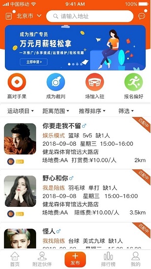 1.幫助用戶隨時(shí)隨地找到心儀的運(yùn)動(dòng)伙伴