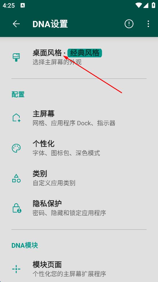 2、返回主屏幕,再次點擊“DNA設(shè)置”圖標(biāo),進入“DNA設(shè)置”頁面,找到“桌面風(fēng)格”選項并點擊。