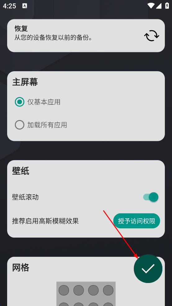1、在主屏幕找到“DNA設(shè)置”應(yīng)用圖標(biāo)并點擊,進入設(shè)置界面,在相關(guān)配置區(qū)域完成操作后,點擊底部綠色勾選按鈕確認(rèn)。