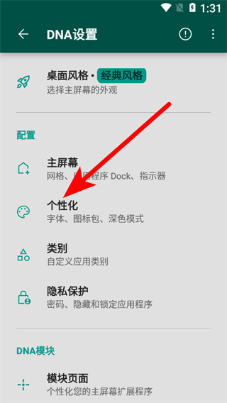 2、在DNA設(shè)置界面,點擊個性化選項,進入個性化設(shè)置頁面。