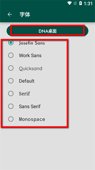 4、在字體選擇界面,選擇DNA桌面下喜歡的字體,即可完成字體選擇操作。