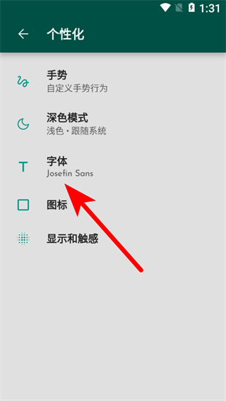 3、在個性化設(shè)置頁面,點擊字體選項,進入字體選擇界面。