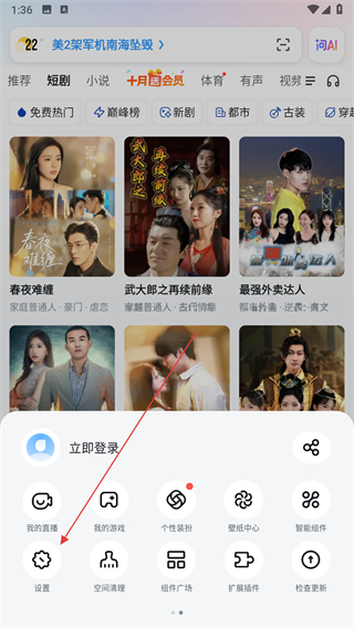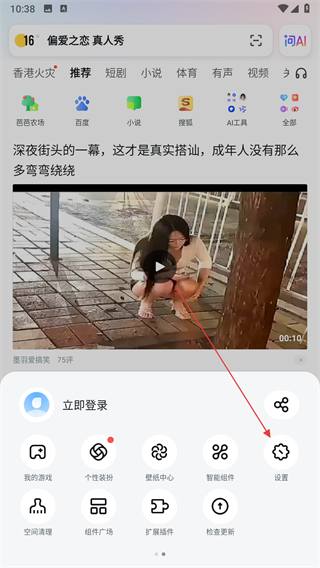 2、在功能面板中,找到設(shè)置選項并點擊,進(jìn)入瀏覽器的設(shè)置界面。