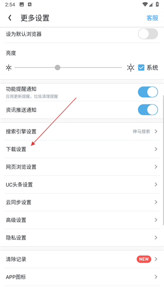 3、在更多設(shè)置頁面找到下載設(shè)置選項,點擊進(jìn)入下載設(shè)置頁面。