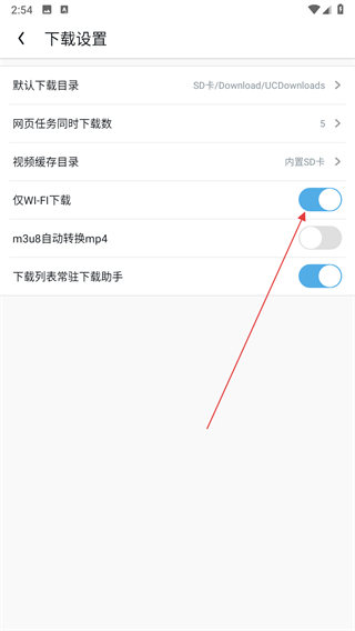 4、在下載設(shè)置頁面找到僅WI-FI下載功能開關(guān),將其開啟即可。
