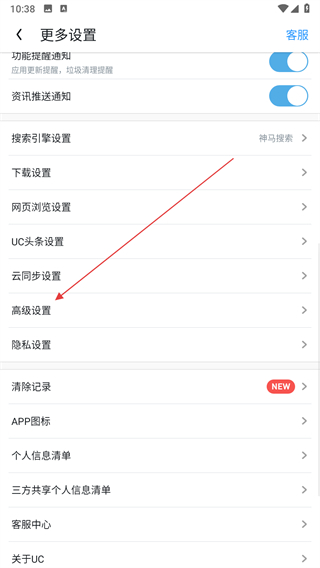 3、在設(shè)置界面里,找到高級設(shè)置選項并點擊,進(jìn)入高級設(shè)置頁面。